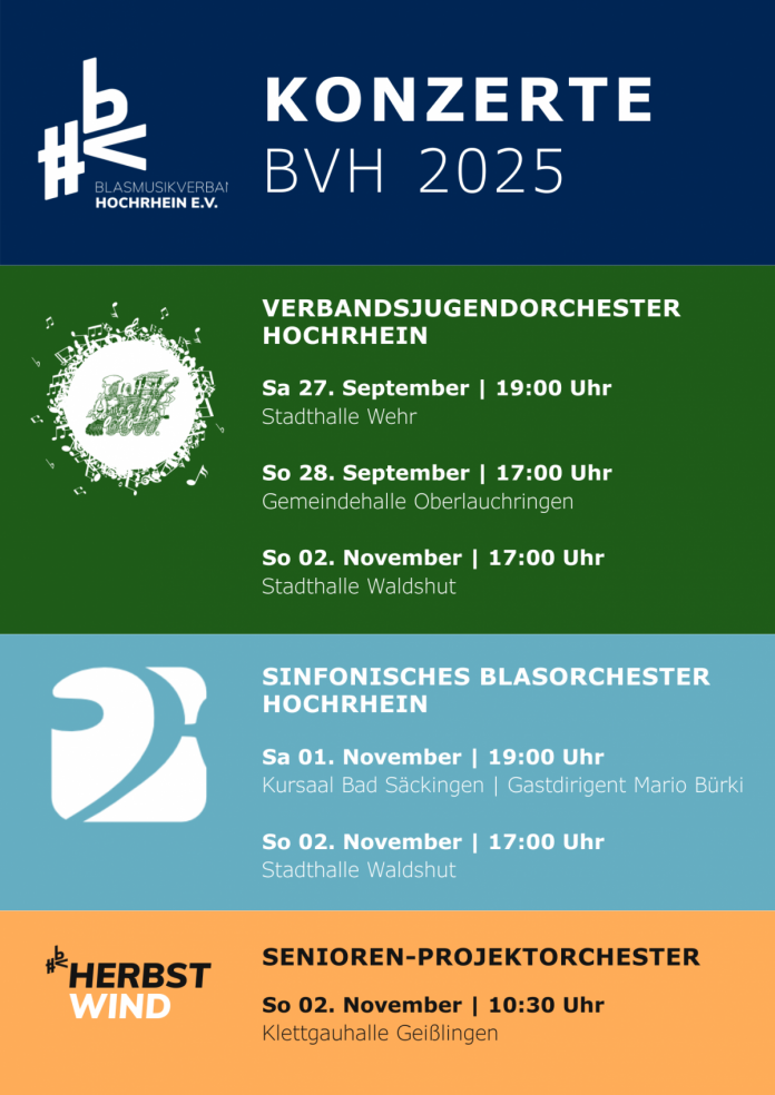 Für unsere beiden Orchester "Verbandsjugendorchester Hochrhein" und "Sinfonisches Blasorchester Hochrhein".
